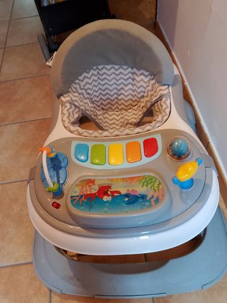 Usado 2 meses entrego con la caja - Diseño con temática marina. - Incluye varios juguetes interactivos. Y música -Bandeja de juegos extraíble por si quiere comer - Asiento acolchado y con respaldo. - Estructura de plástico resistente