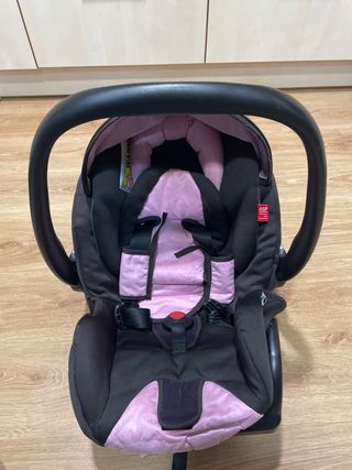 Silla de coche Maxi-Cosi para el Grupo 0+, con un diseño en color rosa y negro. - Incluye reductor para recién nacidos. - Capota para el sol. - Asa de transporte. - Sistema de arnés de 3 puntos.