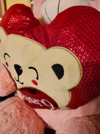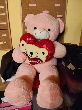 Este adorable oso de peluche rosa es perfecto para expresar amor. - Diseño tierno con corazón. - Color rosa suave. - Ideal para ocasiones especiales. - Medidas: 1,10m aprox
