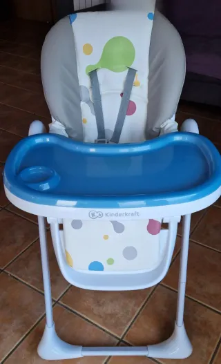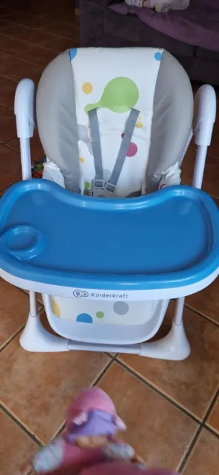 Trona infantil Kinderkraft modelo Yummy, con un diseño alegre y funcional. - Asiento acolchado con estampado de burbujas. - Arnés de seguridad de 5 puntos. - Bandeja extraíble con portavasos. - Estructura metálica. - Plegable para un fácil almacenamiento.
