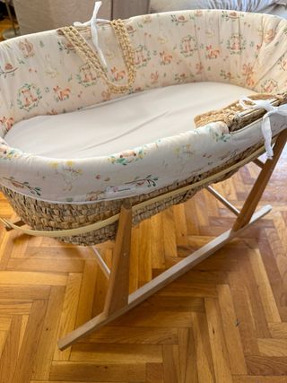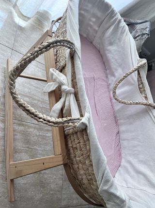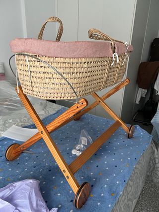 Moisés de mimbre con soporte de madera