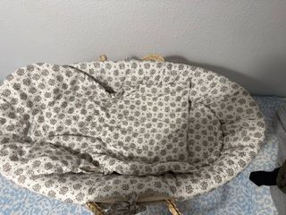 Moisés mimbre con colchón, colcha y cojín