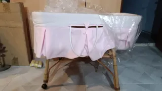 Moisés de mimbre para bebé, perfecto para los primeros meses. Su diseño natural y las ruedas facilitan su movilidad por la casa. Tiene muy poco uso y se encuentra en perfecto estado - Cesta de mimbre tejida. - Base con ruedas para desplazarlo fácilmente. - Asas para transporte. - Incluye colchón poses en bebé - Incluye la ropa para vestir el moisés y una sábana bajera para el colchón