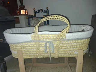 Moisés de mimbre con base metalica plegable