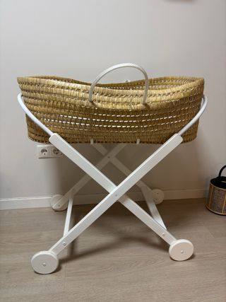 Cuna moisés para bebé, de mimbre con ruedas. Está en buen estado, aunque tiene algunas señales de uso. - Estructura de mimbre. - Incluye colchón. - Ruedas para facilitar el movimiento. - Perfecta para los primeros meses del bebé.
