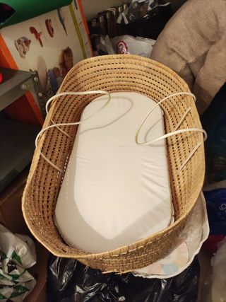Moisés con patas y colchón, va sobre un soporte de patas de madera, que no está montado porque va con tornillos pero se vende todo.