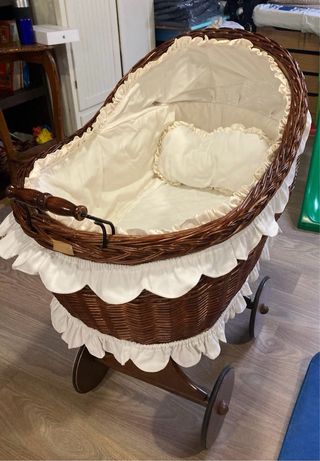 Preciosa cuna moisés de mimbre y patas mecedora de la marca Claire Lune. Está en muy buen estado y es perfecta para los primeros meses del bebé. - Cuna moisés de mimbre. - Patas de madera.