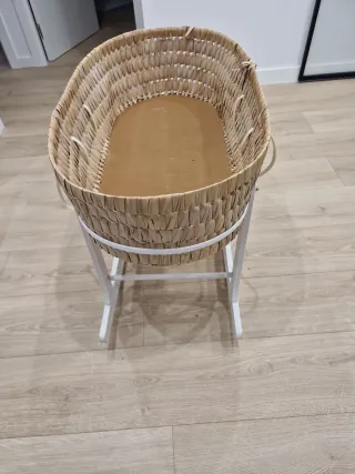 Moisés para bebé en muy buen estado, usado muy poco. - Estructura acolchada. - Asas de mimbre. - Incluye colchón.