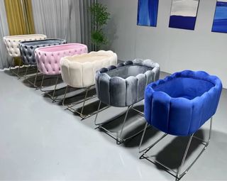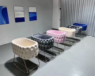 Elegante minicuna tipo moisés con un diseño acolchado y moderno. - Tapizado en terciopelo. - Base con patas metálicas. - Disponible en varios colores. -incluye colchón -se puede poner fija o balancin -por encargo
