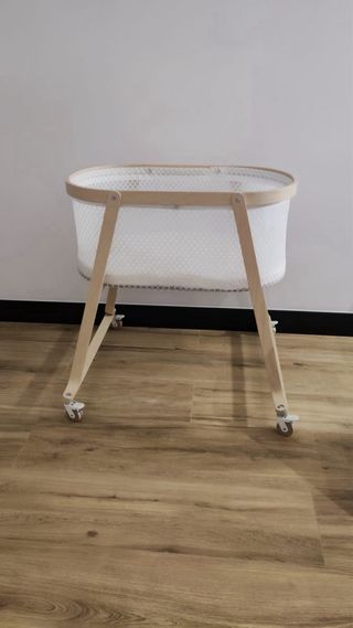 Moisés de estilo nórdico, modelo ÄLSKVÄRD de IKEA. Su diseño ligero y las ruedas facilitan su movilidad. • Estructura de madera clara de abedul. • Cesta ovalada con tejido de malla semitransparente. • Ruedas para fácil desplazamiento que incluyen freno. • Se incluye colchón, protector y sabana bajera. • Se encuentra en LEÓN CAPITAL Para recoger