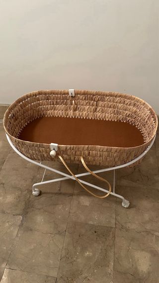 Moisés de mimbre con soporte de madera