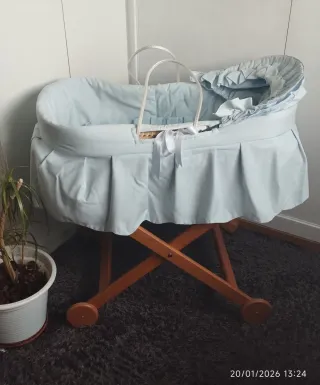 Se vende Moisés para bebé. En muy buenas condiciones. Es de mimbre el canastillo y las patas de madera, con ruedas. Muy cómodo. Tiene colchón. Se regala colcha a juego y almohadón. Es una oportunidad.