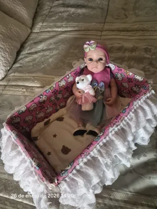 Bebé Reborn Silicona Completa con moisés y cuna