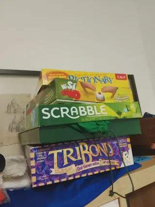 Juegos de mesa: Pictionary, Scrabble, Tribond
