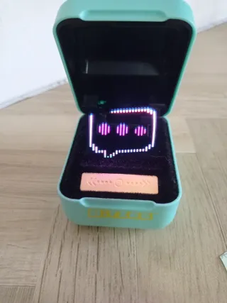 Mascota digital interactiva Bitzee con diseño pixelado. - Diseño de píxeles en la carcasa. - Imagen de mascotas digitales en el interior.