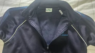 Chaqueta deportiva azul marino con cuello blanco y detalles en blanco y azul. - Logo del Colegio Salzillo bordado en el pecho. - Cierre de cremallera frontal. - Puños y cintura elásticos. Talla 12