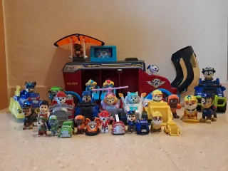 Lote de juguetes de la Patrulla Canina con varios personajes y sus vehículos. - Incluye figuras de los cachorros. - Varios vehículos temáticos. - Gran camión de la Patrulla Canina. - Centro entrenamiento de la Patrulla Canina.