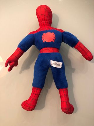 Peluche del personaje Spiderman. - Diseño clásico del superhéroe. - Colores rojo y azul característicos. - Símbolo de araña negra en el pecho.