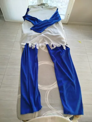 Disfraz de princesa o reina para niña, ideal para fiestas o juegos. - Diseño de vestido largo azul con detalles dorados. - Incluye mangas acampanadas y cinturón. - Estilo de cuento de hadas. * Ojo! Tiene un poco de descosido en el vestido, en la zona axila pero si lleva puesta la chaqueta no se ve. (Hay fotos)