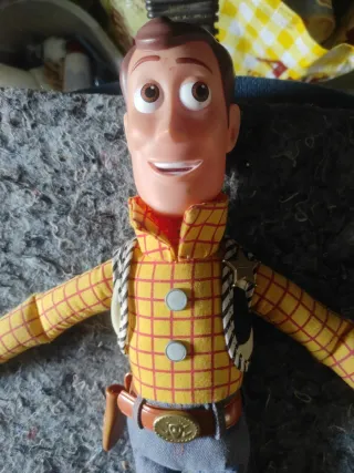 Muñeco del personaje Woody de Toy Story. Este juguete habla en inglés. - Diseño inspirado en el personaje. - Ropa detallada con camisa a cuadros y chaleco. Funciona perfectamente. Habla en ingles.