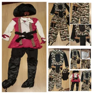 Conjunto de disfraces infantiles. - Disfraz de pirata con sombrero, chaleco, camisa y pantalón.En buen estado .Vale 8_- - Disfraz militar con traje de camuflaje completo sin estrenar Vale 8