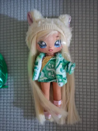 muñeca Na Na Na Surprise. mide 22 cm. como nueva, autentica y con sus zapatitos y bolsos. - Bolso acolchado de color verde brillante. - Muñeca con pelo rubio largo y sombrero de orejas. - Ropa con estampado