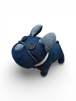Peluche de perro de la marca Jack & Jones. - Diseño de bulldog francés. - Confeccionado en tela vaquera (denim). - Detalles con botones. - Incluye un collar blanco.
