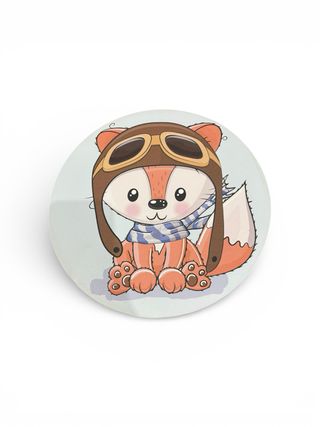 Adorno redondo con un tierno diseño de zorro piloto. - Ilustración infantil. - Estilo de aviador con gorro y gafas. - Pañuelo a rayas.