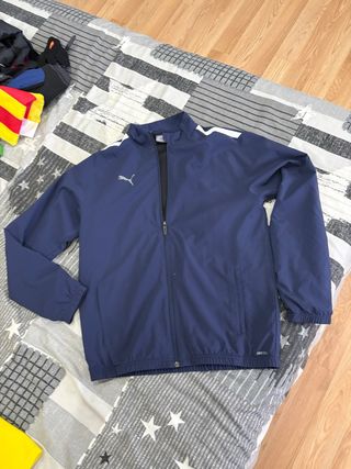 Chaqueta deportiva Puma de color azul marino. - Logo de Puma en el pecho. - Cierre de cremallera. - Puños y cintura elásticos. - Detalle blanco en los hombros.