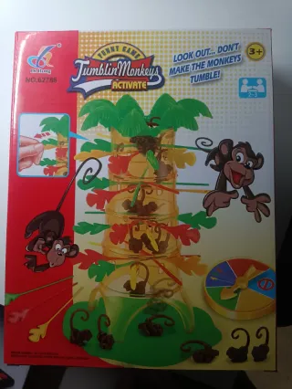 Juego de mesa Tumblin Monkeys Activate. ¡Mira hacia arriba, no dejes que los monos se caigan! - Juego divertido para 2-3 jugadores. - Apto para mayores de 3 años. - Incluye spinner y palitos.