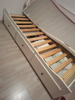 Cama individual blanca con cajones
