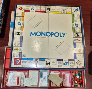 **Antiguo juego de Monopoly (versión inglesa) para coleccionistas – Edición única** Se vende un **exclusivo juego de Monopoly en inglés** de gran valor para coleccionistas. Esta pieza clásica, difícil de encontrar en el mercado actual, es ideal para los amantes de lo vintage y de los juegos de mesa históricos. Aunque tiene una pequeña reparación en la parte trasera del tablero, esto no afecta en absoluto ni al área de juego ni a la legibilidad.