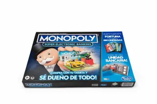 Juego de mesa Monopoly Super Electronic Banking. - Incluye unidad bancaria electrónica. - Tarjetas bancarias para las transacciones. - Fomenta la compra y venta de propiedades.