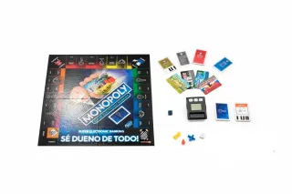 Juego de mesa Monopoly Electronic Banking. - Incluye unidad bancaria electrónica. - Tarjetas bancarias para registrar la riqueza. - Las propiedades suben y bajan de valor.