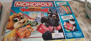 Juego de mesa Monopoly Junior Electrónico. - Incluye tablero, piezas y tarjeta bancaria. - Versión electrónica del clásico juego de propiedades. Usado 2 veces