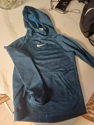 Jersey azul con capucha, ideal para un look casual. - Tejido suave y cómodo. - Diseño moderno con textura. - Manga larga.
