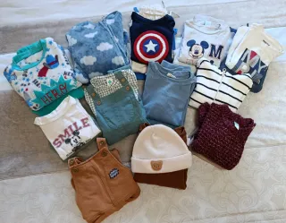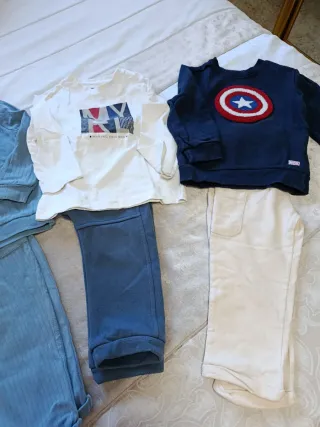 Conjunto de ropa para niño de 18 a 24 meses. - Incluye varias prendas de diferentes estilos. - Diseños divertidos con personajes. - Tejidos cómodos para el día a día. De regalo la mochila de Mickey. No se vende por separado. Ya está preparado para el envío. Están en muy buenas condiciones. Algunas no se han llegado a estrenar y la gran mayoría 3 puestas.