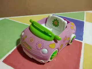 Coche descapotable de Pinypon en color rosa, decorado con flores y corazones.