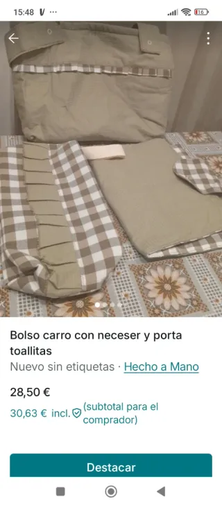 Bolso de carro para bebé con estampado Vichy en negro y blanco. Es un bolso hecho a mano, nuevo y sin etiquetas. Nunca se ha usado. Tiene 2 pequeñas manchitas en la parte de dentro que seguramente desaparezcan al lavarlo. - Diseño a cuadros Vichy. - Cierre con lazada. - Detalle de etiqueta cosida.