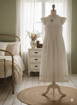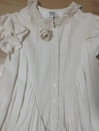 Vestido de algodón para niña, ideal para ocasiones especiales o uso diario. Su diseño es delicado y cómodo. - Material: 100% Algodón. - Detalles: Encaje en cuello y mangas. - Cierre: Botones frontales.