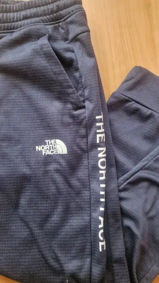 Pantalones de chándal The North Face para jóvenes. Diseño moderno y cómodo. - Color azul marino. - Logo de The North Face en blanco en la pierna izquierda. - Nombre de la marca THE NORTH FACE estampado verticalmente en la pierna derecha. - Pantalones The North face júnior. Apenas uso porque se quedaron pequeños. Precio en tienda 45. Talla L de niño. Muy calentitos