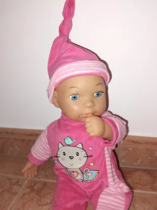 Muñeca bebé con pijama de gato rosa que hace ruido