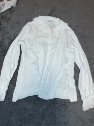 Elegante camisa blanca de manga larga con detalles de volantes. - Cuello con volantes. - Puños con volantes. - Cierre de botones. - Marca: Mayoral.