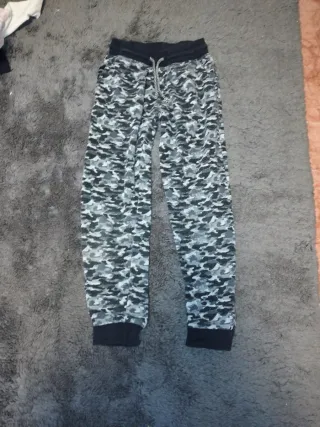 Pantalón infantil con un llamativo estampado de camuflaje en tonos grises y negros. La cintura es elástica y cuenta con cordón ajustable para mayor comodidad. - Estampado militar. - Cintura elástica con cordón. - Puños en los tobillos.