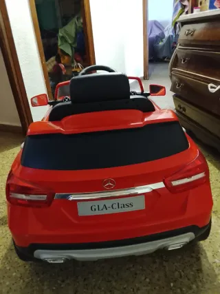 Coche eléctrico infantil con licencia oficial Mercedes-Benz. - Diseño deportivo inspirado en el modelo GLA-Class. - Color rojo brillante. - Volante y asiento negros. - Mando parental. - Sistema de sonido con entrada de USB tarjeta SD y cable tipo jack. - Batería como nueva. - Cargador.