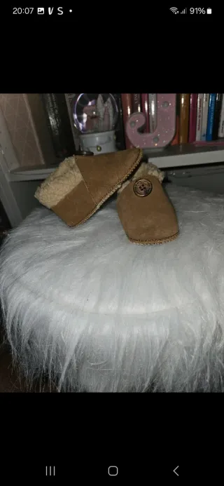 Zapatillas unisex de El Corte Inglés en talla 19. Son cómodas y cálidas. - Exterior de ante. - Interior forrado de pelo. - Detalle de botón de madera.