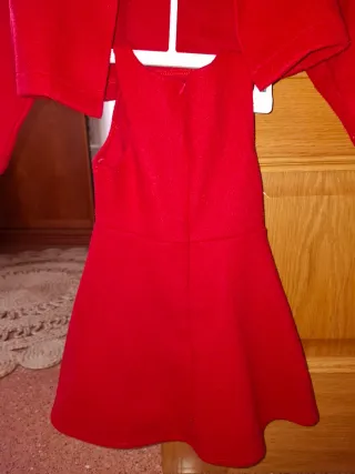 Conjunto de dos piezas para niña, ideal para ocasiones especiales. - Vestido rojo. - Chaqueta roja a juego.