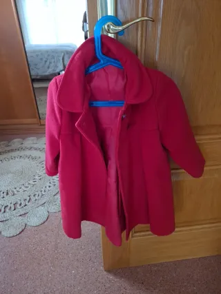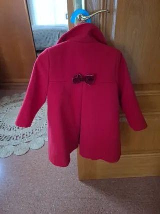 Abrigo infantil de color rojo, ideal para mantener abrigada a las más pequeñas. - Diseño clásico con cuello. - Cierre de botones. - Mangas largas. Usado 2 dias