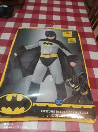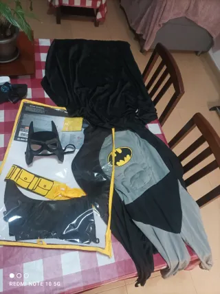 Disfraz de Batman para niño, ideal para fiestas o juegos. - Incluye máscara. - Cinturón amarillo. - Capa negra. - Traje con el logo de Batman. -Funda botas