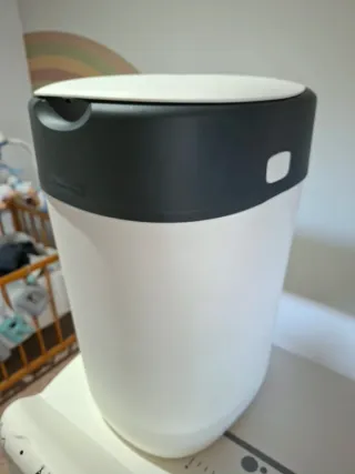 Contenedor de pañales con tapa. - Color blanco y gris. - Diseño moderno.
